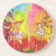 I'm not sure how much moisture these will soak up, haven't had a chance to try them out, but they look good and I like the cork backing. The printing is fine ~ and really looks cool with an artisan's hand made "Hurricane Martini" glass sitting on top of my painting (on the coaster) in my studio.