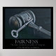 Wooden judge's gavel and brass skeleton key. The word "Fairness" along with a definition of the word.
