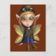 An adorable large eyes fairy aviator is sitting, taking a break from her flying. This fairy is wearing a protective cap, goggles on the top of her head, a jacket, boots, and knee-pads. She has the cutest large green eyes with tints of copper. Her beautiful butterfly type wings have a spectrum of colors such as red, yellow, green, and blue. Her pointy ears resemble that of an elf. Perfect for anyone into fantasy, flying, or simply onto the extremely cute!