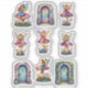 A whisper‑soft, enchanted aesthetic defines this sheet of scrapbook ephemera stickers, showcasing a collection of fairy‑door cutouts that look as though they were lifted straight from a hidden woodland realm. Each miniature door is crafted with weathered stonework frames, their textured edges giving the impression of ancient pathways carved into mossy hillsides. Rose vines climb gracefully along the sides, their blooms unfurling in soft, romantic hues that add a touch of delicate whimsy to every vignette.