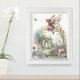 Whimsical watercolor anime fairy framed nursery poster with pixie dust and magical garden. A perfect cute framed poster for a baby shower gift. For baby nursery or a young child's room.