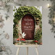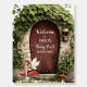 Fairy Door Fairy First Birthday Welcome Sign. Step into a whimsical world with this rustic enchanting fairy door first birthday party sign! Featuring a beautifully illustrated wooden fairy door nestled within a stone wall, adorned with lush greenery and delicate flowers, this design sets a magical tone for any little one's special day. A charming fairy rests on a toadstool, adding to the fantastical atmosphere. This sign is perfect for welcoming guests to a fairy-themed celebration, creating a memorable first birthday experience that's straight out of a storybook. Let this magical entrance guide your little fairy's guests into an unforgettable whimsical celebration.