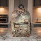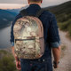 This backpack enables you to take an enchanted forest filled with mushrooms, a toad, a dragonfly, and even a whimsical fairy wherever you go. The lovely vintage looking colors of taupe, pinkish brown, cream, olive green, and brown provide a soft touch to this magical woodland scene. Type your initials in the Personalize section - or delete the placeholder initials if you don't want any - to customize this fun and unique backpack.