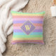 Fairy Kei Pastel Rainbow Striped Monogram Throw Pillow