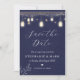 Fairy lights save the date, navy blue wedding invitation