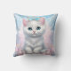 An adorable fairy princess white kitten with jewels, pink flowers and fairy wings on a sparkly blue background.
