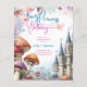 Watercolor inspired Pink Fairy Castle Birthday Invitations