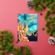 A vibrant real foil print (choose between gold, rose gold or silver) rests against a vibrant watercolor blue, teal and black smoke filled background. An exquisite orange and gold fairy with her wings wide open is sitting in the bottom left corner and has two small golden butterflies flitting around her. She appears to shimmer and shine and has long blonde hair cascading over her shoulder. The back has the same design plus a single template for additional wording, if required. If not, simply clear the template to leave the graphic only. This is ideal for a "fairy theme" birthday, fairytale bridal shower or an enchanted folk ladies birthday party.