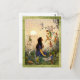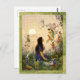 Digital dry brush paint technique used to create this design from an original antique postcard created by Margaret W. Tarrant in 1908. Green grunge background.