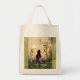 The printing came out very well, better than I had anticipated. The natural color fabric is sturdy with strong seams and comfortable handles. This tote fits easily over my shoulder. As it is filled, the bottom flattens out--very cool! I would buy this product again. This grocery tote holds a lot of groceries! The image quality was very good. The colors were a little darker than I had expected. The darkness may have been due to printing on a natural color fabric rather than on white. The cat design is attractively centered on the tote. The spirit of the design is very lively, just as it appears on the Zazzle website.