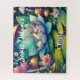 Personalized fairy puzzle. Cute little fairy sleeping on a lotus flower on a lily pad with flowers and mushroom background. Cute fairytale style illustration. Sweet dreams.