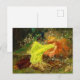 Postcard featuring Arthur Wardle’s painting A Fairy Tale (1895). A young woman with long red hair wears a yellow dress and sleeps in a green forest next to resting deer, a rabbit, and peacock. A beautiful gift for fairy tale lovers and English art enthusiasts!