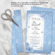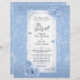 Create your own enchanting fairy tale inspired Cinderella scroll invitations in beautiful shades of light blue and faux metallic silver on a simple, editable template. Follow the dotted lines to cut and roll up these elegant wedding scroll invitations, wither with or without a dowel rod and ribbon, for a romantic medieval feel. The original art by Raphaela Wilson showcases delicate watercolor roses, faux sparkling silver butterfly confetti atop a fancy filigree border, and a magical pumpkin horse drawn carriage clock about to strike midnight.