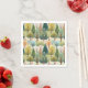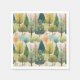 Inspired by children's book illustrations, the trees have a hand-drawn quality—some tall and slender, others rounded and bushy—scattered across the napkin in an organic, flowing arrangement. The white background adds brightness and contrast, letting the gentle forest hues stand out while maintaining a clean, modern feel.