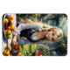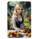 Flexible magnet featuring a beautiful fairy in an enchanted garden with lots of fruits. Nice for Thanksgiving or any occasion.