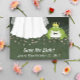Bride with frog prince humorous save the date wedding postcard. A funny wedding announcement postcard, easy to customize front and back with your own text. A fun wedding invitation for the bride to be who has always dreamed of the perfect fairy tale wedding to her prince charming. Visit Jenn’s Doodle World for even more funny wedding invitations and original wedding planning supplies.
