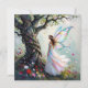 A sweet card to say hi to a friend and wish them a magical day. The front of this card has a beautiful and magical scene with a fairy standing next to a tree full of whimsical vines and flowers.