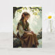 A sweet whimsical thinking of you card for a friend or family member wishing them a magical day, featuring an elven fairy in vintage dress sitting on a tree branch.