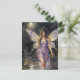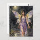 Fairy walking in a rainy night postcard