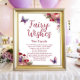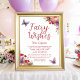 Create a magical keepsake with our Fairy Wishes Time Capsule set. This enchanting feature includes a beautifully designed sign and you can also purchase the matching notecards, perfect for your fairy-themed celebration. Guests are invited to leave a note, fairy trinket, or both creating a treasure trove of memories for your little one to open in the future. Trinket ideas include: gems and stones, shells, pearls, jewelry, miniatures, small dolls and figurines, and anything a fairy would love! The whimsical design features delicate butterflies, watercolor florals, and charming script and serif fonts.