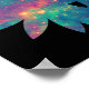 A cool colorful poster with a galaxy and space print theme. Here is a fairy (faerie) with wings sitting down.