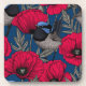 Fairy-wren and poppies, seamless pattern drawn on Illustrator.