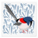 Fairy Wren on pale blue eucalyptus leaves and gumnuts background.