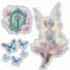 Fairycore stickers with a fairy, blue butterflies and a key.