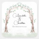 These elegant and romantic custom wedding stickers feature a watercolor fairy tale style archway of tree branches. The limbs, branches, and leaves of the trees are crossing over to create a beautiful entrance to a whimsical forest. The arch wraps around the names of the married or engaged couple. It's perfect for a Boho style, fairytale inspired, or romantic wedding theme. The names are printed in an elegant script font which you can personalize to include your own names or other custom text.