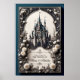 A beautiful romantic fairytale castle surrounded by an ornate from and pale ivory flowers.