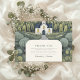 A heartfelt wedding thank you card featuring a cozy storybook chapel nestled in a lush woodland setting. Perfect for couples who want to express their gratitude with warmth and whimsy, this charming card pairs beautifully with an enchanted forest or countryside wedding theme.