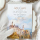 Announce your wedding in enchanting style with this "Save the Date" card, featuring a breathtaking watercolor illustration of the iconic Neuschwanstein Castle in Bavaria, Germany. The artwork captures the fairytale essence of this romantic castle, nestled among autumn-hued trees and misty blue mountains. With soft tones of amber, sage, and misty blue, this card is perfect for couples planning a dreamy destination wedding. Let the charm and grandeur of Bavarian scenery set the tone for your special day with this elegant and timeless design.