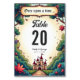 This elegant fairytale-style wedding table number is perfect for a modern wedding. The retro design features a vintage enchanted forest, a castle illustration, and black calligraphy on a storybook-themed background.