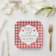 Fairytale Princess Fairest One Red Gingham Plaid Birthday Paper Plates - Adorable first birthday napkins with a red gingham background and a vintage label shape. The phrase "the fairest one of all" is framed by two red apples. Inspired by the classic princess fairytale Little Snow White by the Grimm Brothers. Personalize by adding your little girl's name and the date of the party.