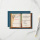 Lovely fantasy wedding RSVP response card made to look like a fairy tale story. Graphics of a ornately decorated open book, with a teal blue leather looking background. Personalize all the text for your Renaissance or Fairy tale wedding. Matching products are available.