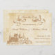 Fairytale wedding save the date cards with a storybook castle and banner on a vintage parchment background. Perfect for your fairytale princess wedding!