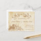 Fairytale wedding save the date postcards with a storybook castle and banner on a vintage parchment background. Perfect for your fairytale princess wedding!