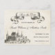 Fairytale wedding save the date postcards with a storybook castle and banner on a vintage parchment background. Perfect for your fairytale princess wedding!