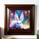 The magicians magic rabbit. This watercolor design includes a soft white bunny. Colorful ethereal candle lite background. High quality poster paper. Comes in many sizes. Perfect for kids room decor.