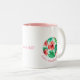Inspirational mug featuring a monstera and hibiscus print. You can personalize the bible verse reference or change it to words.