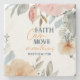 This coaster features a design that showcases a soft, pastel floral motif framing an inspirational quote. At the center, “Faith Can move mountains” is rendered in a mix of bold uppercase and flowing script, with “Matthew 17:20” delicately placed below. The combination of light, watercolor-style blossoms and elegant typography evokes a calming and uplifting feel. This lovely stone drink coaster is the perfect way to serve up a daily dose of spirituality.