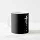 Minimal, typography, black and white coffee mug with memorable, simple word Faith.