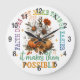 Great price for a very nice product. Arrived a day early - unheard of these days. The outside gold area has a little more orange tone to it than shown in the picture. Great packing so product can't get damaged. I used the same packing to forward the clock to my brother and sister-on-law for the 50th wedding anniversary. Printing was just as expected - lovely!