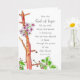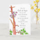 A greeting card featuring a Bible verse from the book of Romans 15:13 and decorated with a branch of a blossoming fruit tree in spring drawn with ink and watercolor. On the inside is another blooming branch and light gray text that you can edit to fit your needs.