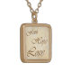 The famous words which are the subject of 1 Corinthians 13, faith, hope, and love are the words in cinnamon brown script on this necklace. The script is placed on an abstract orange, tan, and white background with hints of blue to set it off. Shown in the silver, but looks great in the gold finish, too.