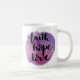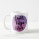 This mug has "Faith Hope Love" beautifully written on both sides! Watercolor background is purple.