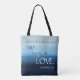 Remind yourself and others to walk by faith with this encouraging bag. It features an ocean-inspired background with text from 2 Corinthians 5:7. It reads "For we walk by faith not by sight."