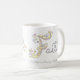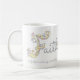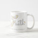 Decorated hand drawn letter with your own name beginning with F and name meaning mug. Pretty heart and flower capital F doodled typographic design featuring hearts and flowers and the words Faith A faithful, kind beauty and trusted friend in grey, pink, purple and yellow. © Unique art and design by Sarah Trett. www.sarahtrett.com for www.mylittleeden.com on zazzle