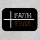 Faith Over Fear Quote. Red, Black & White Text with a Cross. Christian Patch.