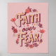 Faith over Fear colorful retro style text design with blooming flowers and leaves decoration for everybody who likes retro style and floral motivational designs.